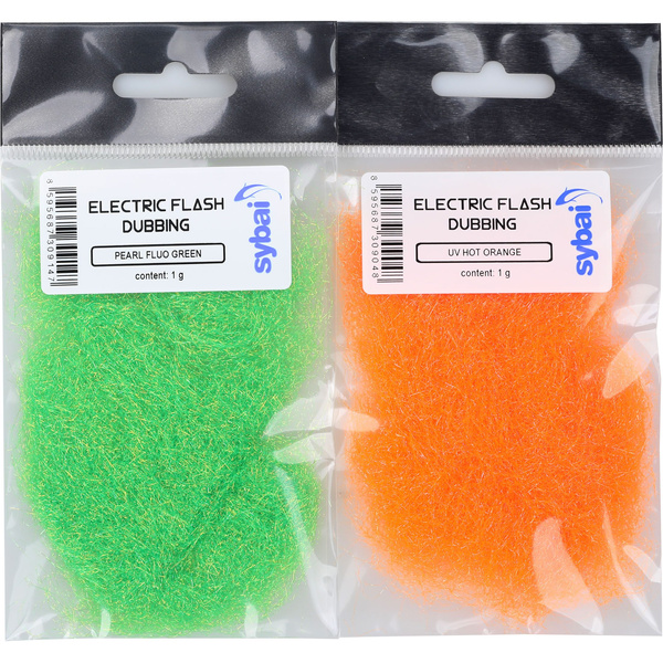 Discover Sybai Electric Flash Dubbing – excellent, unique dubbing in very vivid colors that react to the UV component of light (even in very low sunshine it "lights up" in depth). The fibers are straight, with lengths up to 50 mm, featuring pearlescent or ultraviolet reflection. Universal use – perfect for fly tips, wings, tails, and more. Available variants: Fluo – colors mimicking fluorescence, and UV – glowing under ultraviolet light.