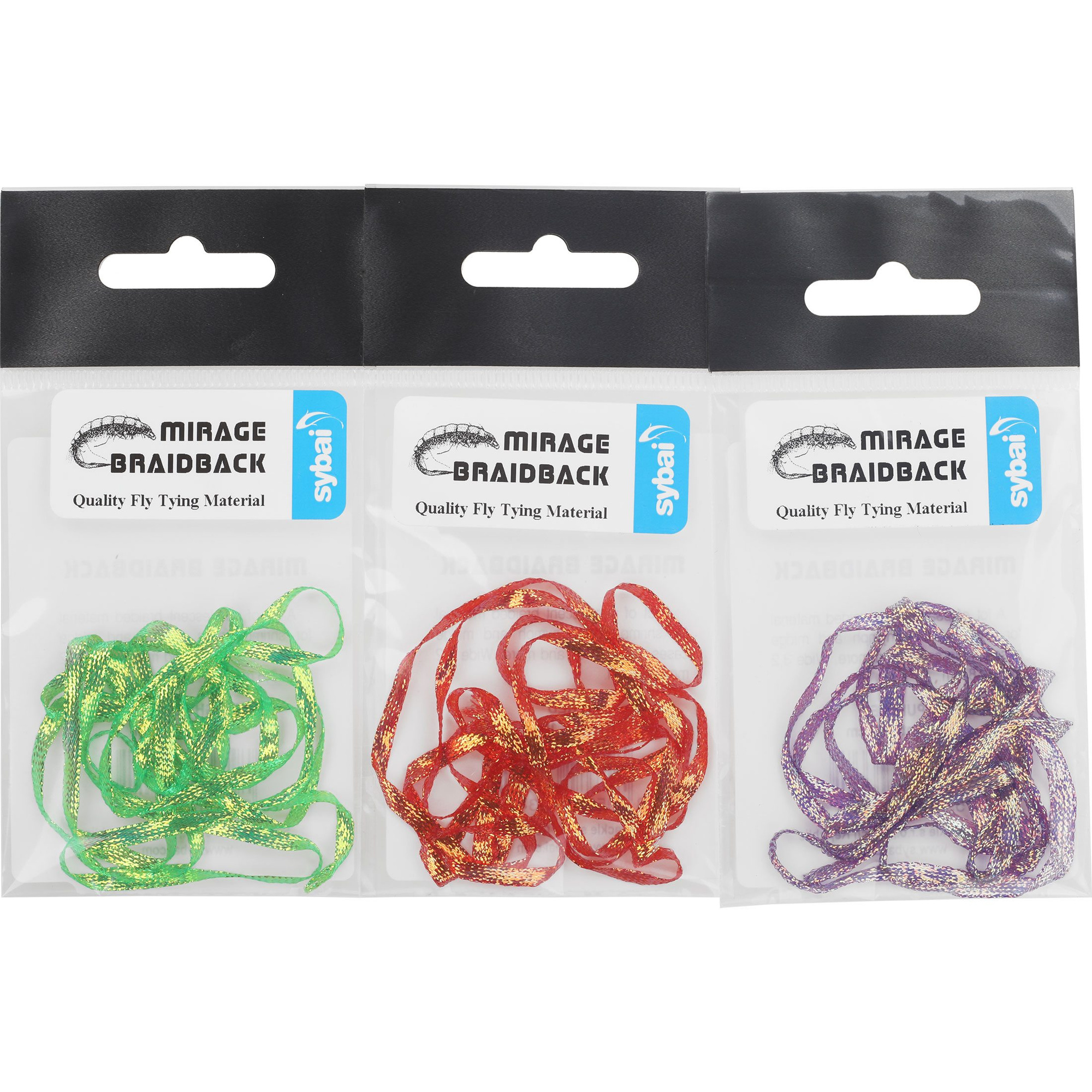 Sybai Mirage Braidback을 만나보세요. 더 강한 진주 빛 광택을 지닌 새로운 버전의 브레이드 백으로 스커드, 새우, 갯지렁이 및 날개 케이스 제작에 적합합니다. 범용 폭은 약 3.5mm입니다.