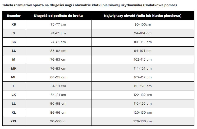 | SK | 155-165 cm | 116 cm | 65-80 kg |