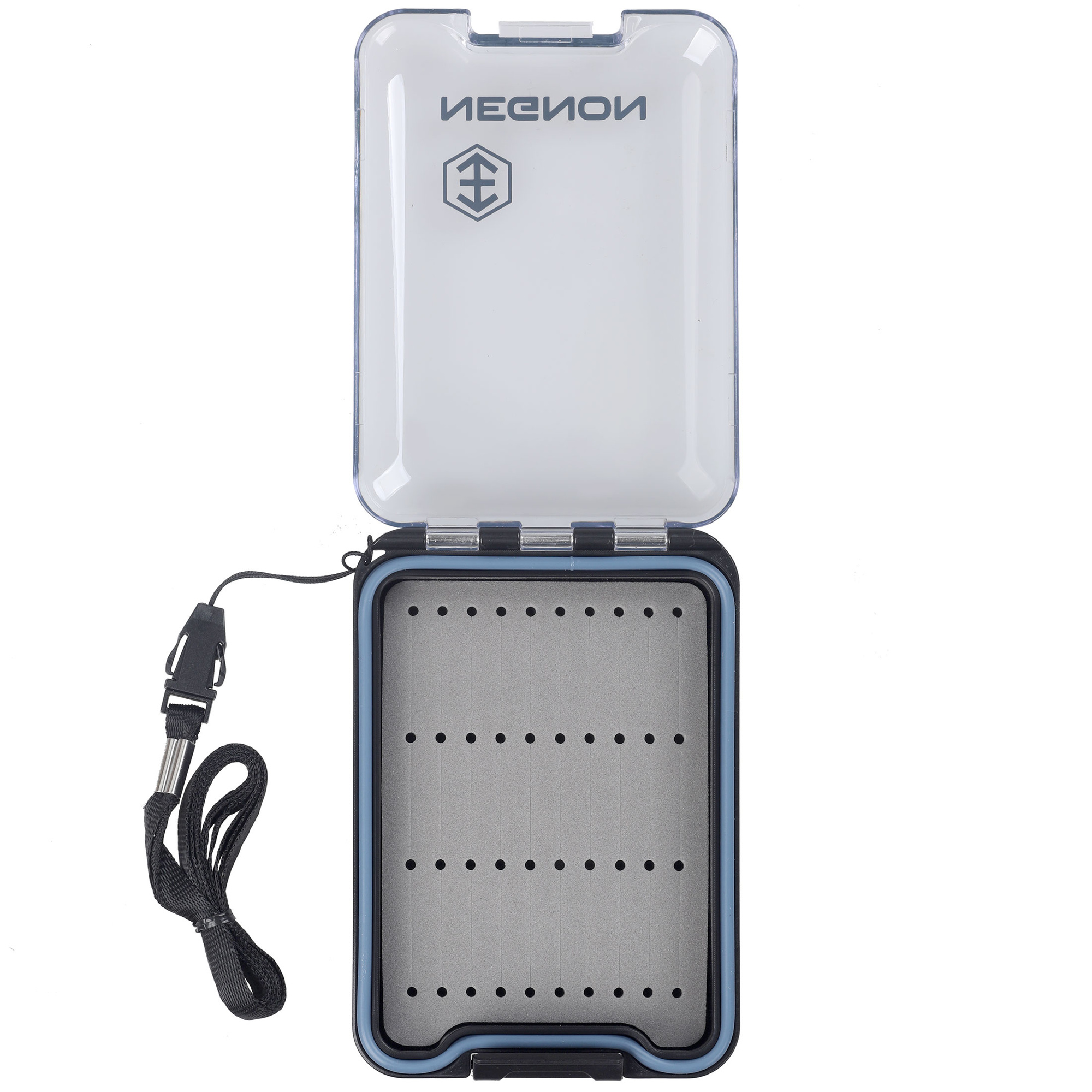 Negnon View Fly Box On Side - Small é uma caixa pequena, fácil de transportar e muito prática para qualquer tipo de mosca. Equipado com junta, garante total impermeabilidade quando fechado. A caixa transparente permite uma visualização rápida do conteúdo sem a necessidade de abrir a caixa. Uma dobradiça resistente e um fecho seguro garantem durabilidade e armazenamento seguro. Possui mosquetão e cordão, permitindo que seja preso ao equipamento ou usado no pulso, evitando quedas acidentais da caixa. No interior há um inserto de espuma para fixação de moscas, com recortes disponíveis em diversas variantes. Escolha a variante que melhor se adapta às suas necessidades.