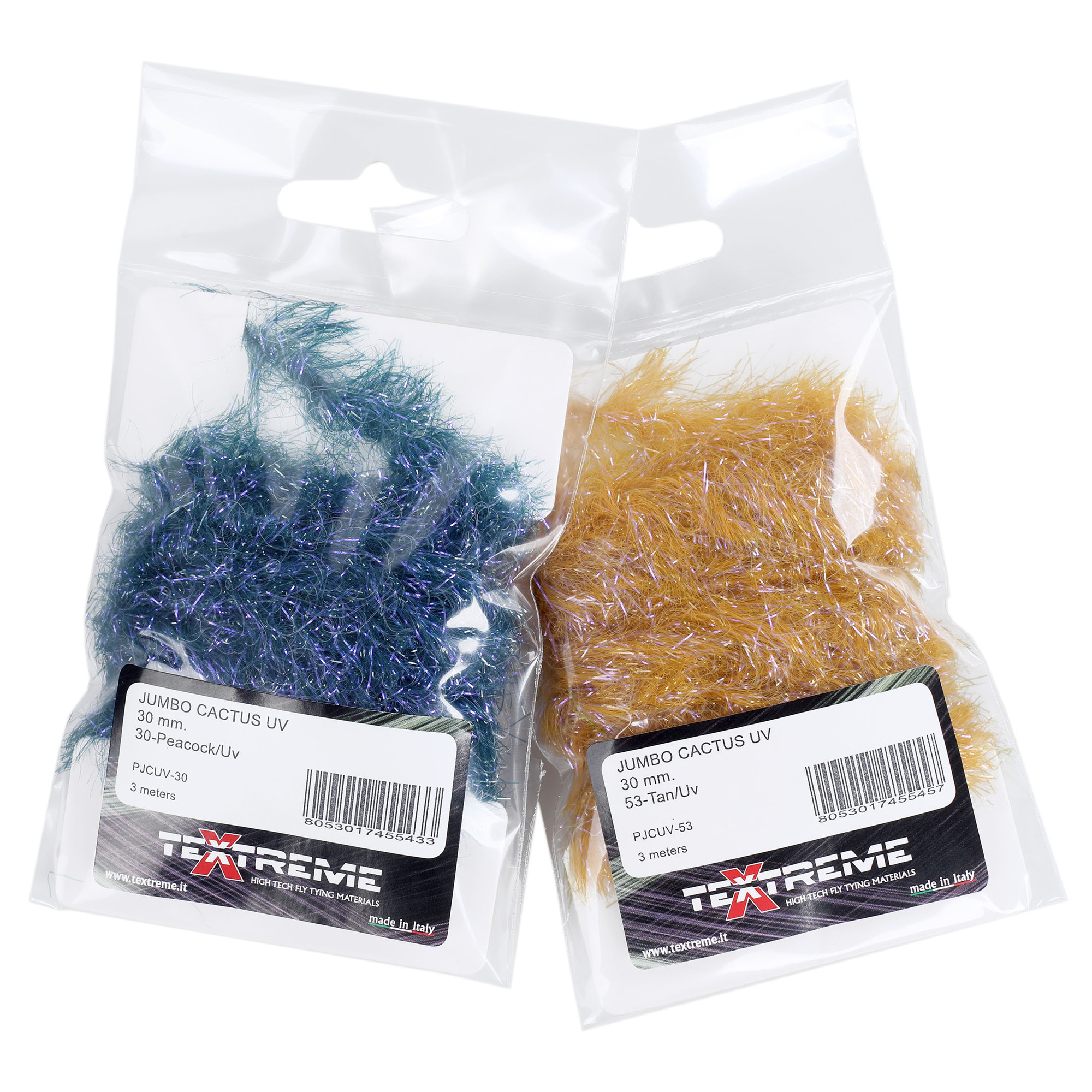 O maior Cactus Chenille já feito em todo o mundo. A sua largura excepcional de 30 mm torna-o particularmente adequado para utilização com moscas que necessitam de corpos volumosos mas leves. Na verdade, a quantidade de fibra de efeito é dosada de forma a garantir uma cobertura ideal do padrão, sem comprometer o peso final. Nesta versão as fibras do arco-íris foram substituídas por fibras UV para obter novos reflexos de cores projetados para grandes predadores.